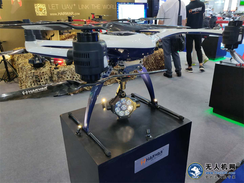 哈瓦无人机MEGA个系列,最高可飞4384米,可抗7级大风,飞行时间60min,可搭载哈瓦36倍变焦侦察系统、空中照明系统、空中抛投系统、气体探测系统、红外探测成像系统、4K全景摄像系统、18倍变焦星光级夜视系统、空中喊话系统、云梯抛投系统、烟雾弹/震爆弹/催泪弹系统、三维立体倾斜系统等三十余款云台。