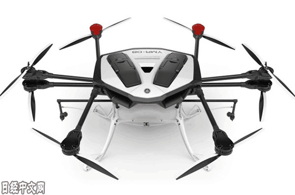 雅马哈发动机将于2018年秋季正式销售工业无人机。该无人机的特点是配备8个上下双重反转的水平机翼,具备媲美无人直升机的飞行稳定性。15分钟可完成1公顷土地的农药喷洒作业。体型小巧、静音性好,在住宅区也可以使用。