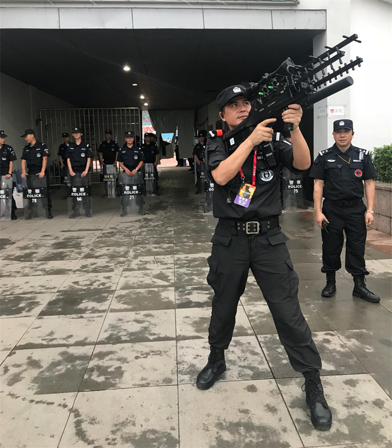 全副武装无人机干扰拦截设备的上合青岛峰会安保人员