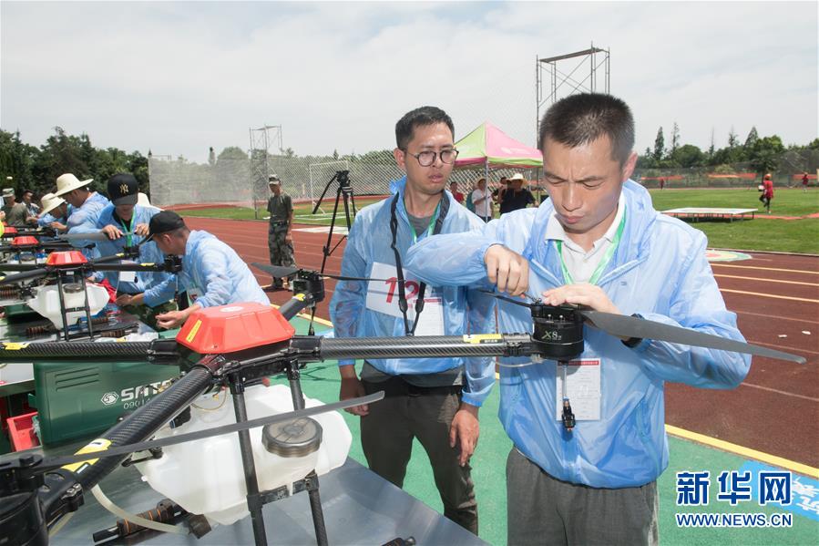6月28日,选手参加农用无人机电池和旋翼拆装比赛。