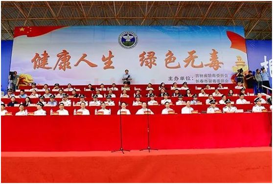 为落实国家禁毒委禁毒宣传月的工作要求,展示省委省政府厉行禁毒的信心和决心,吉林省暨长春市全民禁毒誓师大会于6月27日在吉林大学南岭校区体育场召开。省委副书记、省长景俊海,副省长、公安厅长刘金波,长春市委副书记、市长刘长龙及有关部门领导出席大会。