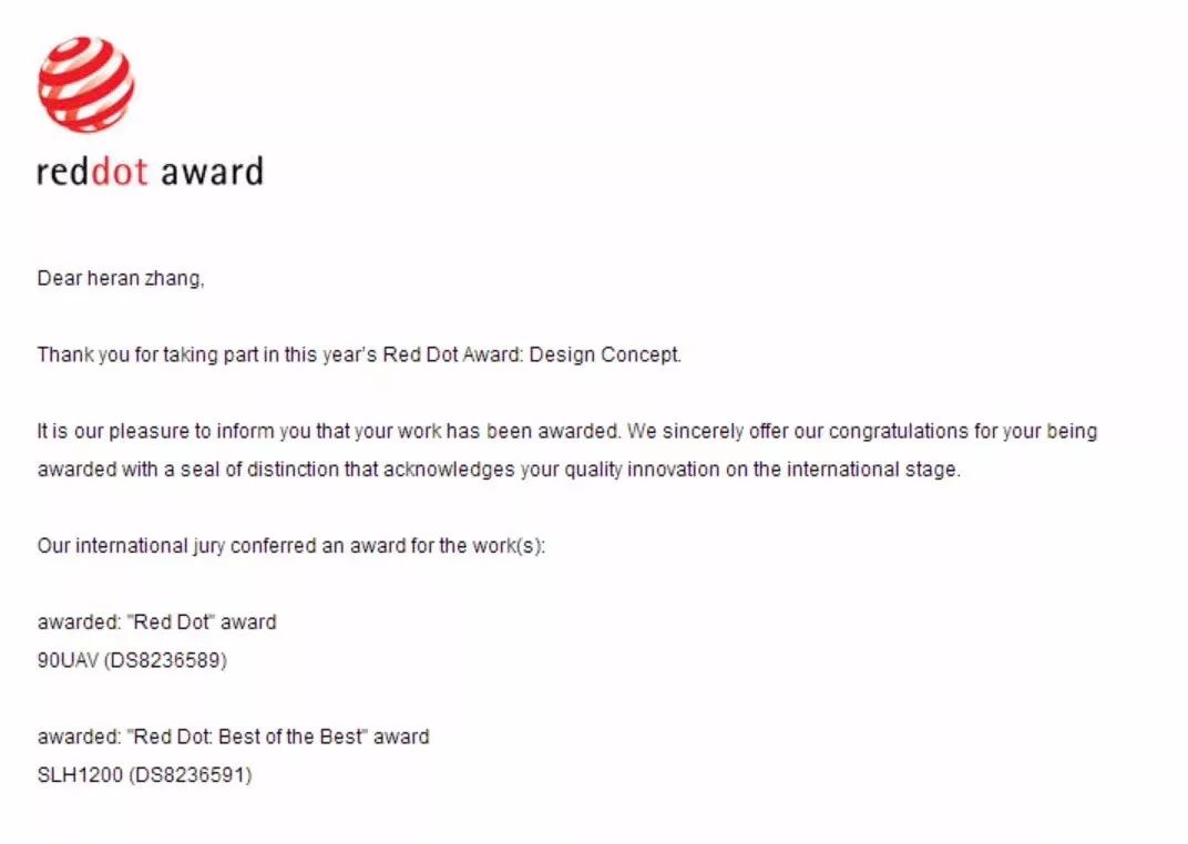 2018年9月28日,红点奖官方颁奖典礼将在新加坡举行。届时,星环航空将在现场接受组委会颁发的2018红点最佳设计奖 Reddot: Best of the Best 以及 2018红点奖 Reddot Award Winner 2018 两项大奖。