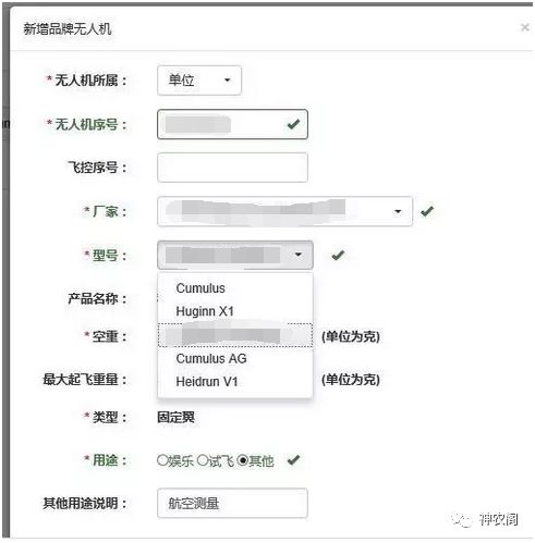 (5)进入‘无人机管理’界面,选择“新增品牌无人机”,会弹出相应对话框。