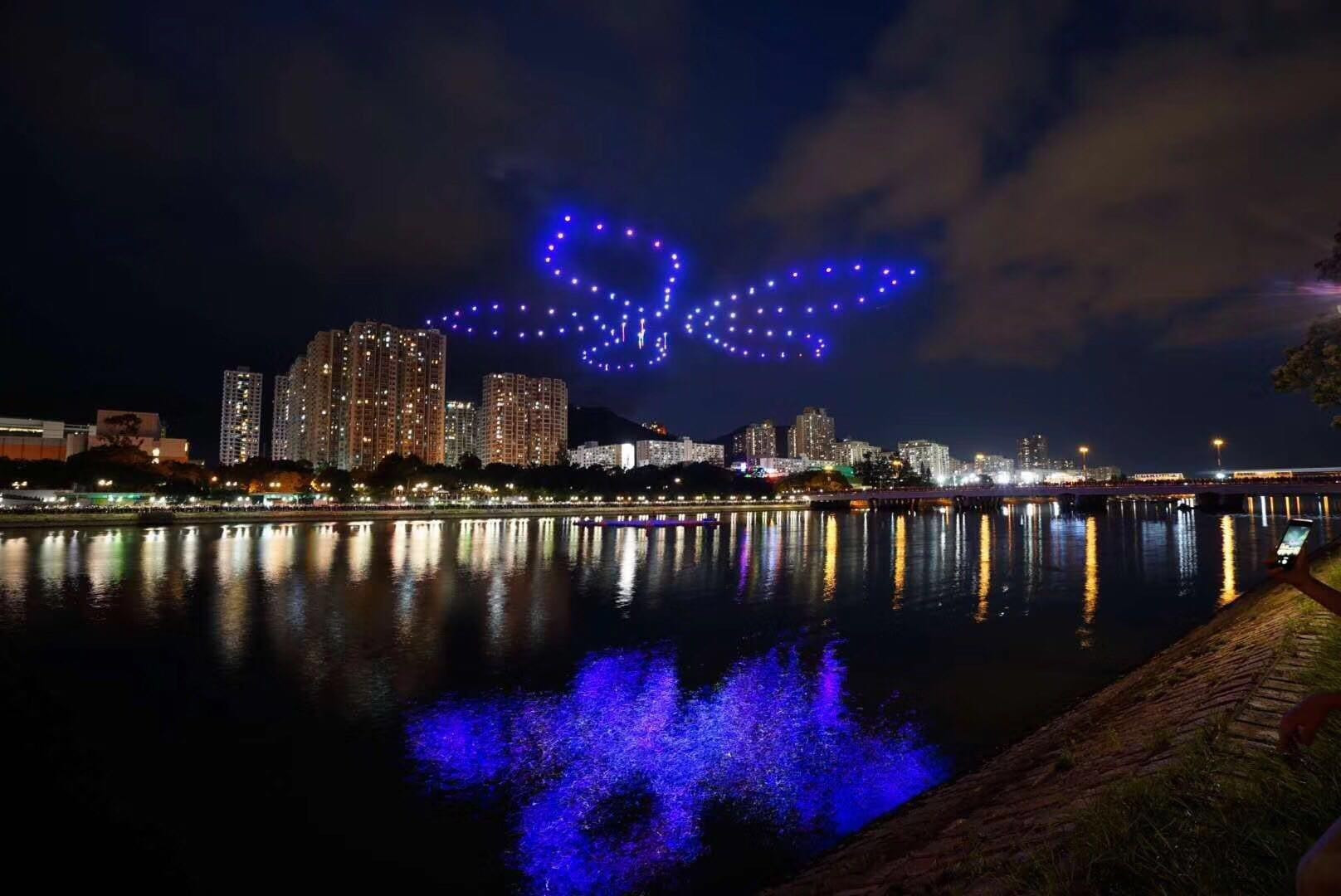 6月30日晚,香港首次100架无人机户外光影汇演贺回归暨沙田节启动礼在沙田城门河畔隆重举行,广州特色企业、无人机应用领域“中国智造”的代表、“全球空域造景媒体”、“最多无人机同时飞行”吉尼斯世界纪录保持者——亿航白鹭传媒科技有限公司受邀献上本次无人机编队表演。