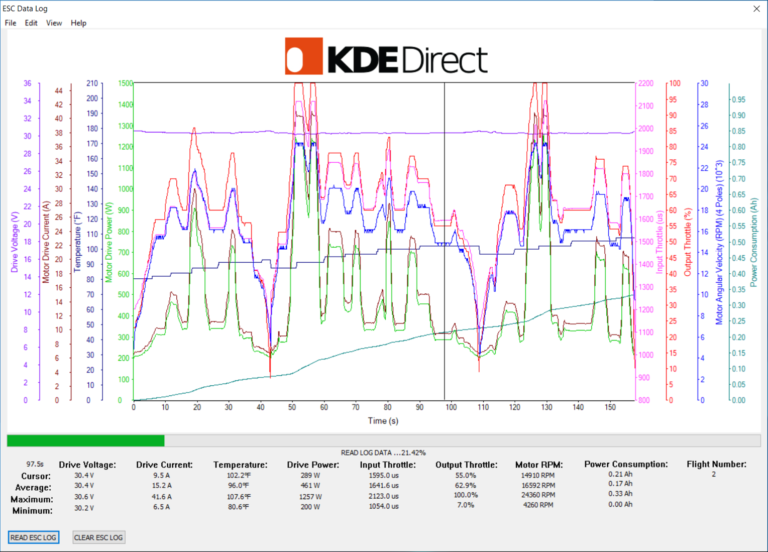 各种数据日志选项比较直观,可存贮和装订以往飞行数据,也可调整数据记录速度,允许电调器记录更多数据。KDE设备管理器软件增加了记录、查看航班时间的功能,可使用户注意其他航班时间,及时抵达目的地。