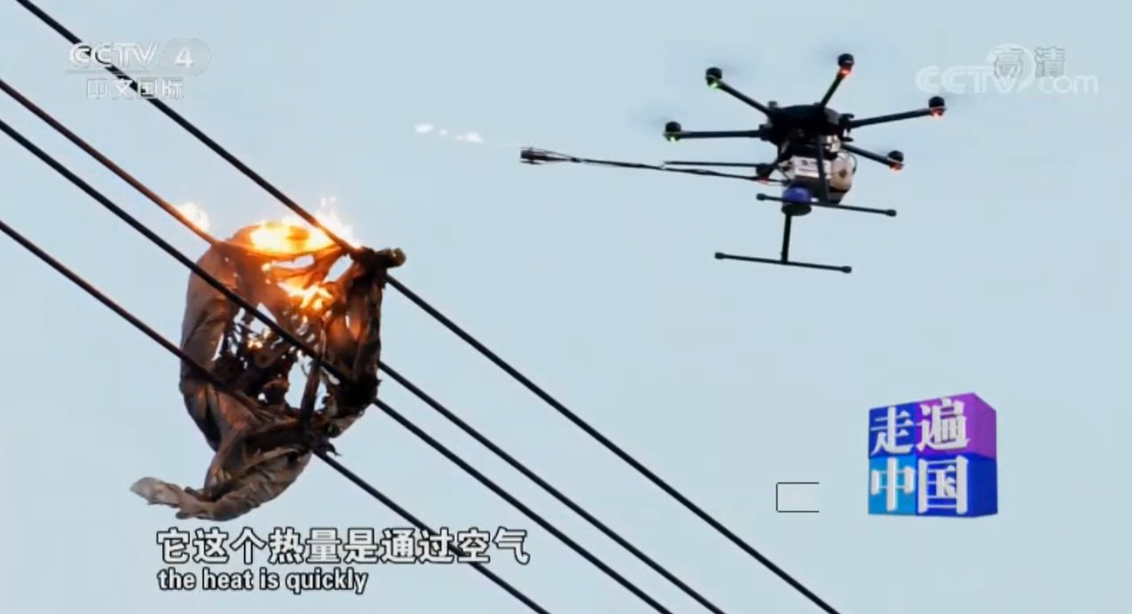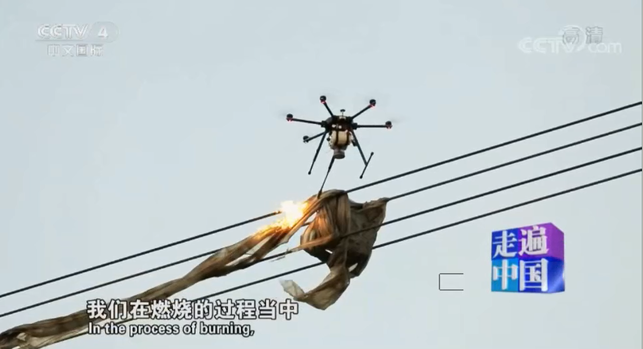 一切就绪后,一条绚丽的火龙随着操控手压下开关的那一瞬,准确喷向悬挂在高压线上的异物。短短十几秒时间,一件棘手的事件就被轻松消除。无人机小组赶到现场25分钟后,线路上的漂浮物完全清除完毕。如果今天采用人工作业,所消耗的时间,至少是无人机作业的5倍!