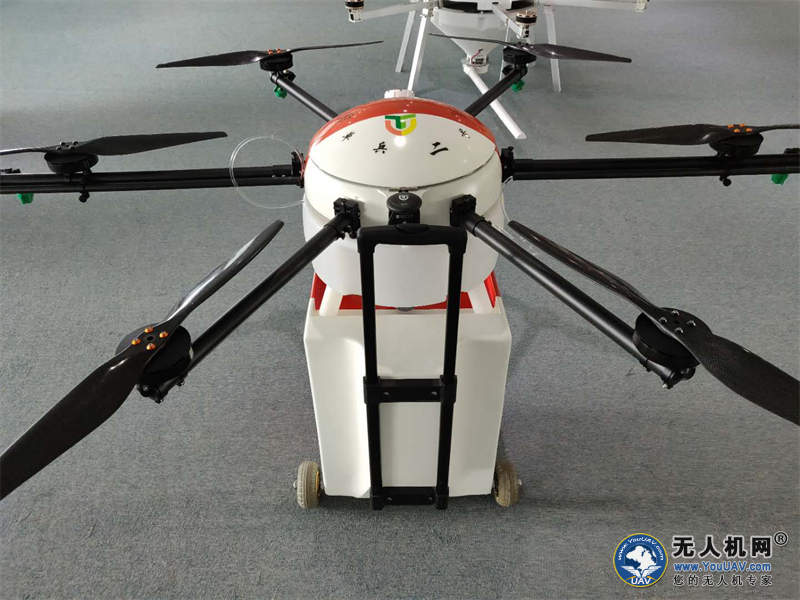 这是银通公司的一款16升便携式植保机,也是目前销量较好的一款明星产品。开云足球记者对这款产品也是钟爱有加,整机和储物箱一体式结合不仅方便搬运而且能够储纳用户平时所需要携带的电池(9块电池)、充电器、遥控器等一系列产品。相比市面上普通的折叠式无人机来讲这样的设计大大提升了用户的作业效率和人工成本,因为原本一套产品需要2-3个人完成的事情,现在只需要一个人就能够轻松完成。而且,性价比较高与市面上普通的植保机价格一样,更重要的是这款无人机已经在河南等地区获得政府的相关补贴,用户只需要支付小部分的费用就能够轻松获得。