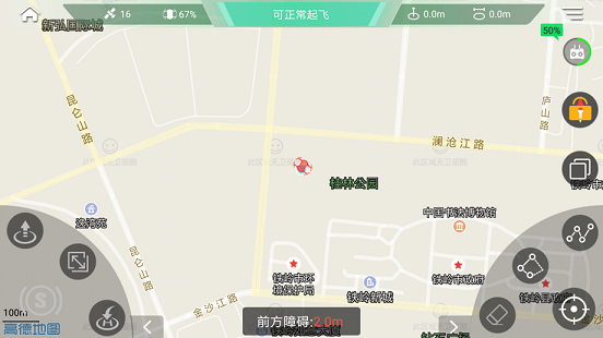 GDU O2拥有高精度的GPS定位系统,能够把米数精确到个位,在APP中可以打开地图模式,通过图片可以看到内置的是高德地图,同时还可以进行实景模式和地图模式切换。