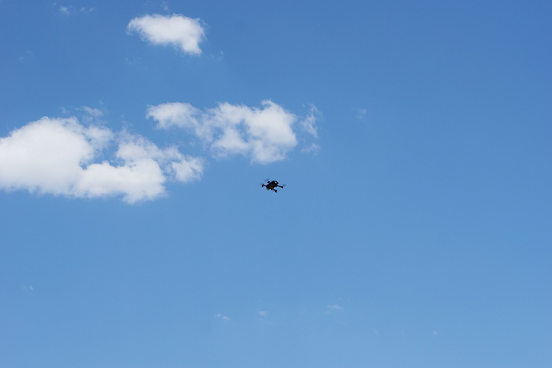 启动后继续上升,让无人机悬停在合适的位置,这是笔者的习惯性操作,能够在正式飞行之前确认机器一切正常。在上升和飞行时因为需要电机全力运转,所以在近处会感觉螺旋桨发出的声音比较大,这是完全正常的现象。
