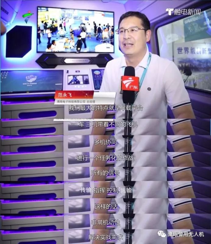 论坛期间,范永飞先生接受媒体专访,就鹰眼警用无人机“三机一车”解决方案在应急救灾中的实际应用进行了详细的讲解。