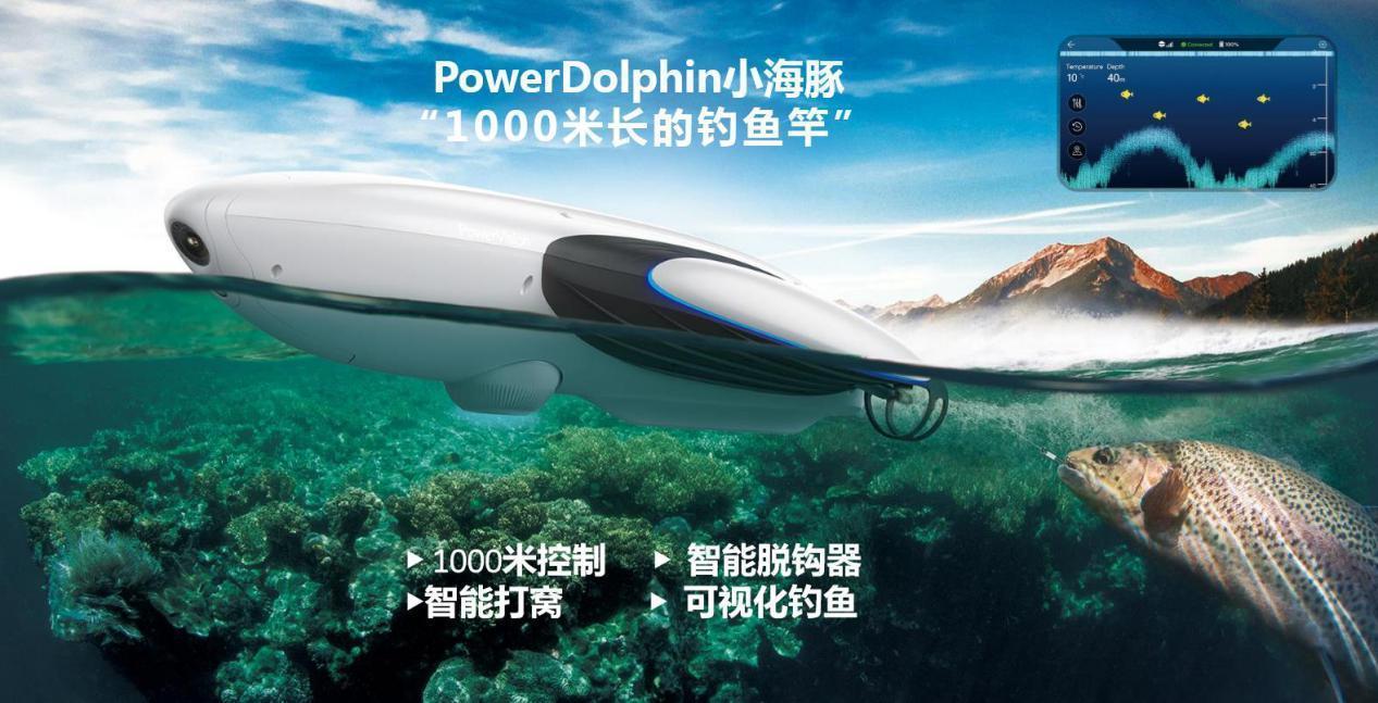 水下无人机的应用场景十分广泛,不仅有水上运动、摄影、潜水、探测地形、海上救援、水下养殖等场景,钓鱼也是臻迪创新开拓的场景之一。钓鱼场景的核心之处在于钓鱼给人带来的乐趣,也拥有着众多的爱好者。相关的数据表明,中国每周钓一次鱼的人大约有3000万,每年钓几次鱼的,要有9000万到1.2亿人的规模,如果放眼全球,大概会有8到12亿人。针对这样的场景,臻迪推出了水上机器人产品PowerDolphin小海豚,它可以帮助用户在钓鱼的时候打窝、可以放氧气球、放食物,还可以直接利用船体拖拽鱼钩进行钓鱼。并且,用户还能通过前置相机实时录像和预览。在今年2018 CES Asia上PowerDolphin小海豚还斩获了创新奖。
