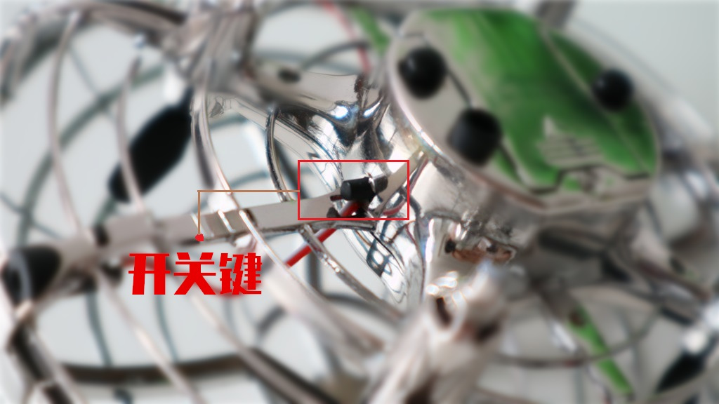 OK,仔细查看机身才发现开关做的很隐秘,在支架侧边,不仔细看很难发现,设计的真和飞碟一样,来去神秘。
