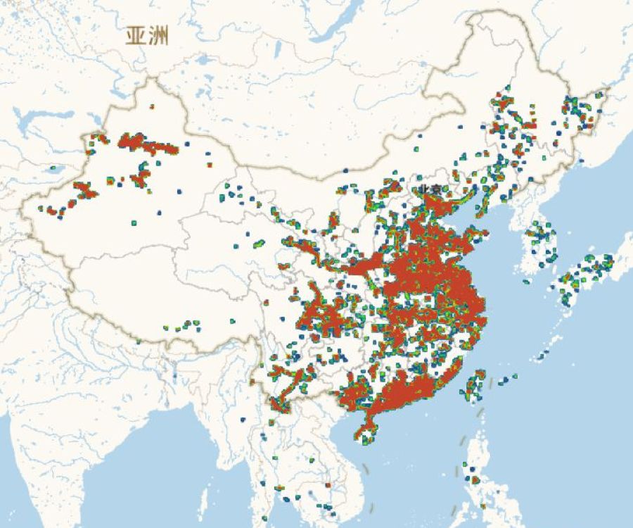 为了更为直观的看到注册于无人机云系统中的无人机运行区域,本报告按季度绘制了无人机运行区域分布图。从图可见,2018年第二季度的4月,注册于云系统的无人机运行范围覆盖了中国、日本,韩国以及东南亚等国家和地区。而5月和6月,更为集中在中国境内运行。