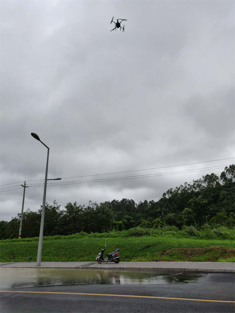 第二天,我网人员继续测试中科灵动“灵动芯”4旋翼油电混合无人机其他性能。不巧的是正好遇到成都突降暴雨,河道和路面积水严重,并且伴随着大风和降雨。但是,这些并能不代表可以取消无人机性能测试的理由。因为据张董介绍,公司产品具有一定的抗雨能力(小-中雨),并且在海拔2千米的地方进行过8级风力测试,因此面对如今4-5级风和小雨的情况下,应该是游刃有余。