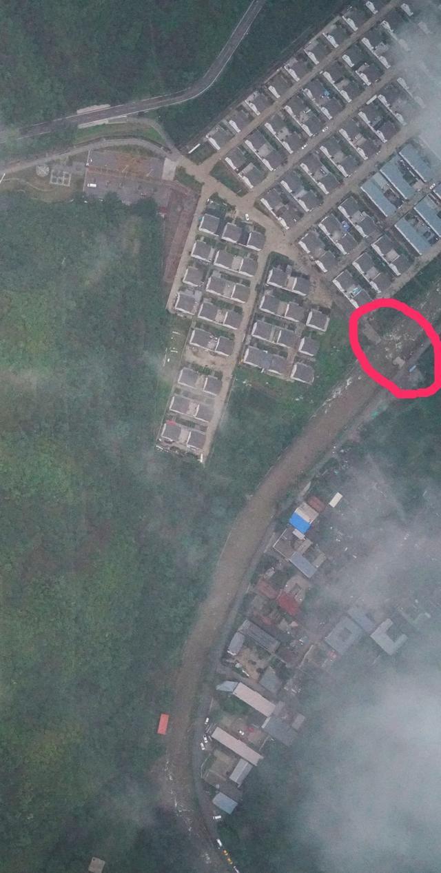 京东勘测无人机在拍摄的灾区情况并发现被冲垮的桥梁