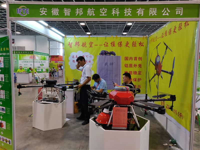 安徽智邦航空科技有限公司是一家专业针对无人机植保销售研发的科技型企业。本次展会上,公司携带4轴10L植保机和6轴15.5升植保机亮相展会。据了解,这两款产品都具备性价比高、抗摔耐用等特点。