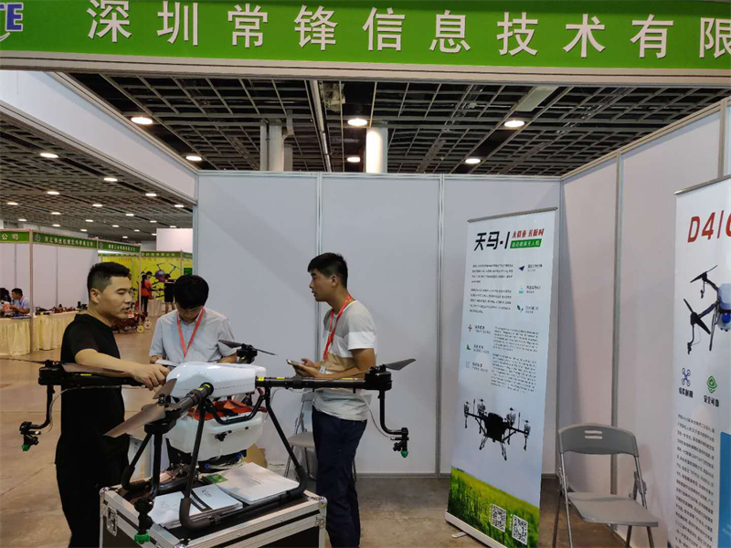 深圳常锋信息技术有限公司成立于2014年1月,致力于成为全球领先的工业级无人机系统应用解决方案供应商。本次展会,公司携常锋D410农业植保机亮相展会。其中最有特点的要属其全自主研发的世界首款燃油直驱多旋翼无人机常锋天马-1油动植保无人机(本次未带参展),该产品解决了无人机载重小和续航短的痛点。常锋款油动直驱多旋翼无人机最大任务载荷为70kg,最大可续航3小时,解决了电动多旋翼无人机载重小,续航短两大行业痛点。