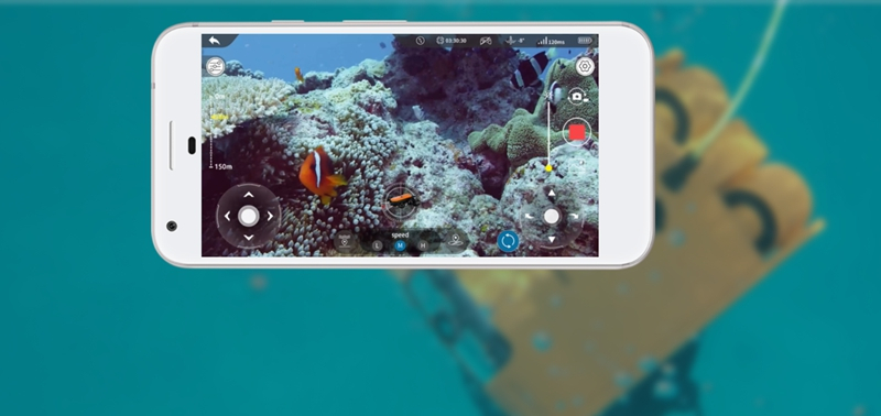 Gladius可以完成水下100米的深潜任务,平均续航时间达三个小时,用户可以使用智能手机或平板电脑来遥控无人机,最大WIFI距离100米。