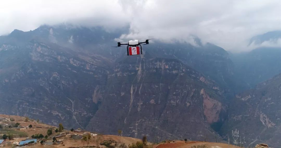 ▲ 京东无人机在四川大凉山悬崖村送药。