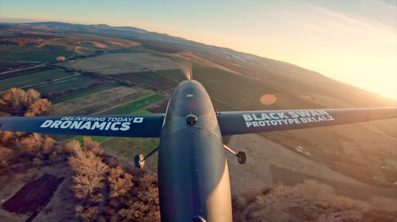 由 Svilen 及 Konstantin Rangelov 两兄弟组成的Dronamics花了 4 年的时间,研发出一架送货无人机﹐命名为黑天鹅(Black Swan)。它能载重 350 公斤,最长航程更达 2,500 公里。据 Wired 的报道,Svilen 直言大部分小型送货无人机旨在解决「最后一英里」的问题,「它们是骑单车的送货员,我们是跨国的货车」。
