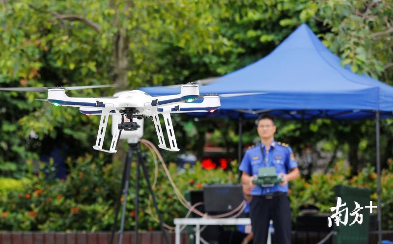 “只要天气允许,我们每周出机飞行巡查三四次。”7月26日上午10时许,中山市城市管理行政执法局无人机航拍操控手曾科胜和同事来到岐江河流域附近,执行本周的一次巡查航拍工作。无人机飞行组在空地上安装设备,调试仪器。10分钟后,一台直径1米多的四翼无人机缓缓升空。