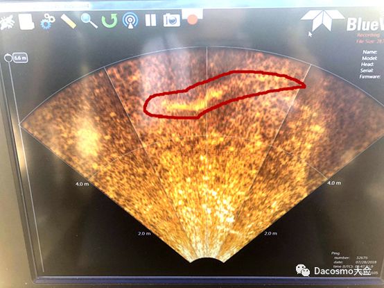 VideoRay ROV水下机器人声纳系统反馈图像探测到溺水者疑似位置