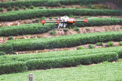 无人机除了能喷洒农药,还能观察茶树生长情况。随着8月的来临,杭州也进入了中伏天。那么,西湖景区龙井茶树状况如何呢?姜新兵说,目前只有零星区域有茶树发生焦叶现象,但在整个茶区尚不明显。