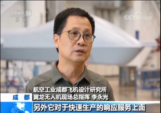 航空工业成都飞机设计研究所翼龙无人机现场总指挥 李永光:它对于快速生产的响应服务上面,表现得很优秀。通过军民融合的模式,发挥航空产业链的整个链的作用。