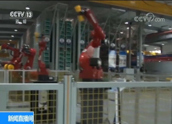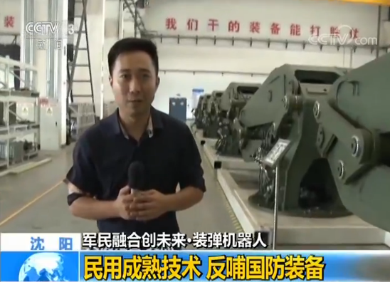 央视记者 吴杰:这里是沈阳新松机器人的生产车间,进入这里就好像进入一个机器人的练功房,除了像我身边这些工业机器人在练臂力和准确度以外,有的机器人在练画漫画,还有的机器人在学习与人交流为人服务,那么这些智能先进的机器人能不能为国防建设服务呢?
