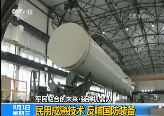 央视记者 吴杰:答案是肯定的,我身边放着的这些机器人看上去像不像一队即将出征的战士?他们其实已经加入了火箭军的行列,在那里,负责导弹的吊装和转运工作。这种机器人可以把几十吨的导弹轻松地提起来。