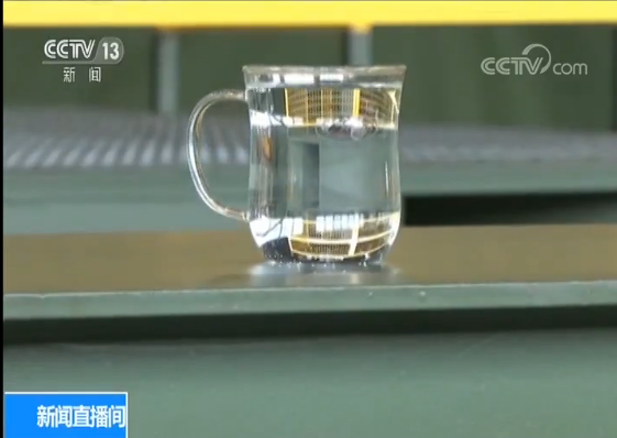 沈阳新松机器人特种机器人项目负责人 李庆杰:在这个吊梁上我们放一杯水,一会儿我们走一个流程,看看这杯水是什么状态。