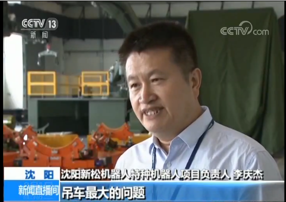 沈阳新松机器人特种机器人项目负责人 李庆杰:用吊车来装吊最大的问题就是牵扯人多,同时转载过程中不稳,战士会非常非常地担心。