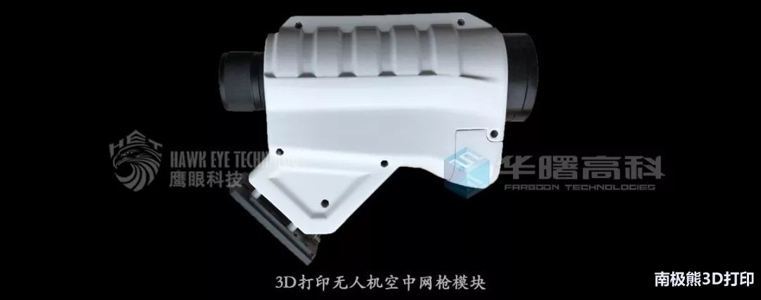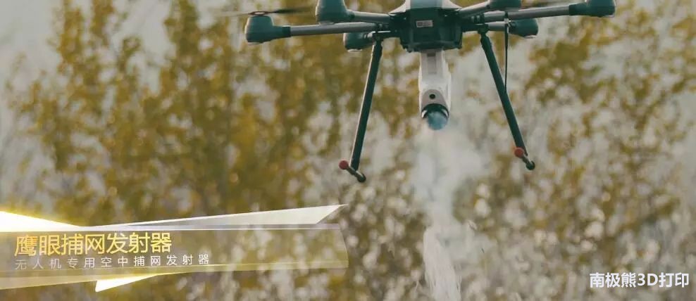 ▲上图为鹰眼科技直接使用的3D打印无人机空中网枪模块