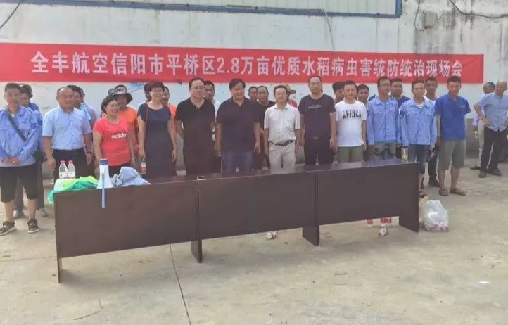 河南省信阳市水稻已经进入抽穗灌浆期,受病虫发生基数高、持续高温降雨等因素影响,病虫害将偏重发生,特别是稻纵卷叶螟、纹枯病和稻瘟病等,如不及时防控,可能对水稻安全生产造成重大威胁。平桥区农业局吴基局长 指出,此次作业时间紧,任务重,责任大,对服务组织的规模、能力和作业经验要求极高,希望全丰航空能不辱使命,确保平桥区水稻高产丰收。