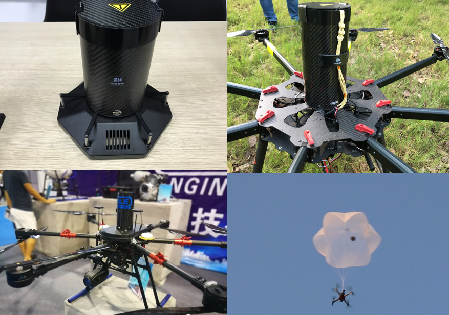 公司目前所生产的伞降系统产品可适用于市面上大部分主流机型,无论是多旋翼、固定翼还是直升机都可以满足,并且5-100kg重量以内的无人机可根据不同的重量选择不同类型的伞降系统。
