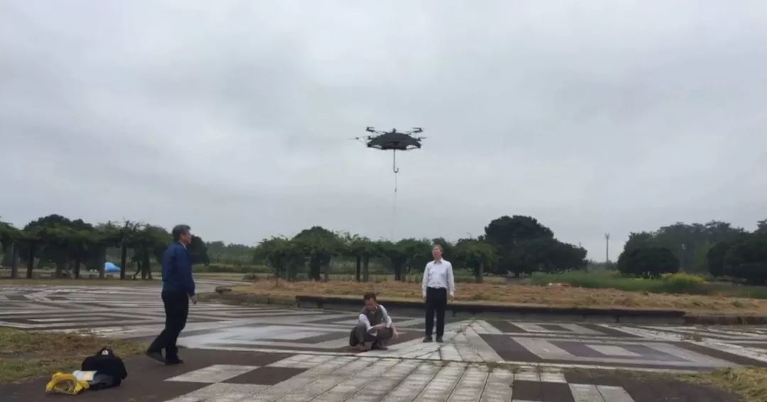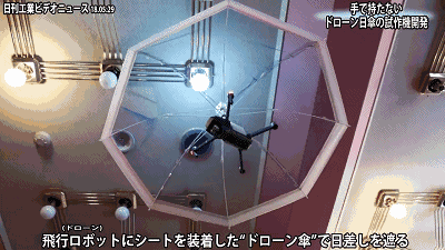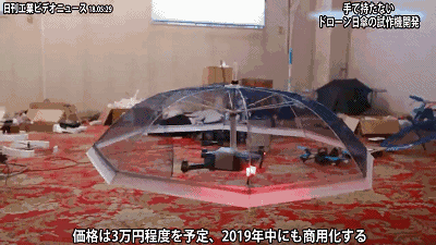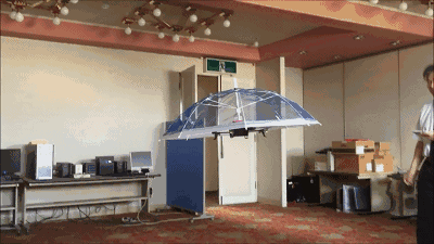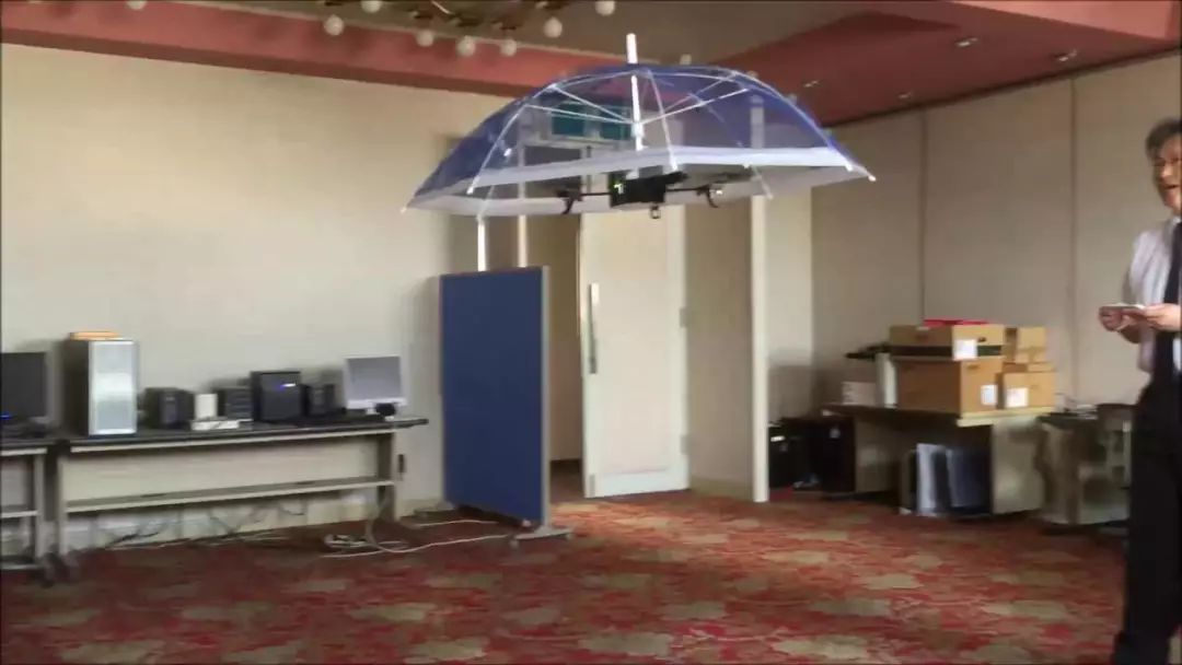 原型使用的是大疆御MavicPro,然后在机身上绑了把雨伞。
