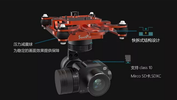 斯威普是国内一家专注于研发防水类无人机的科技型企业,公司所生产的防水无人机被广泛的应用在欧美等发达国家用户。比如:水上项目无人机垂钓、水上救生、水下拍摄、海洋生物探索等领域。此次,公司所新发布的一款一体化设计的三轴防水云台4K相机具备具备高精度,高稳定性,高清晰度以及整体防水等优势,可适用于雨中,水上水下,还有涉水运动等众多场景拍摄。