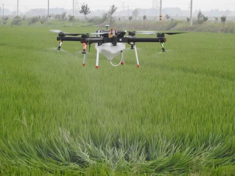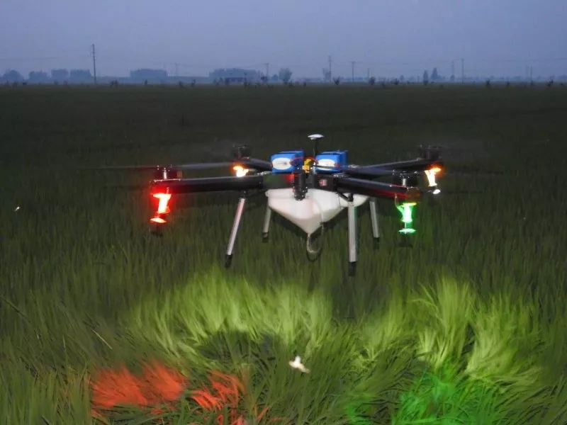 也就是说药液通过无人机的喷头喷洒,通过桨叶向下起的风力,使它的雾滴在作物上着药性更好,这样就起到一个很好的防治作用。