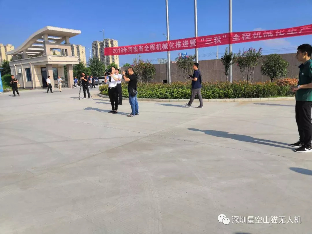 2018年8月21日,我公司携带四架含有国家补贴的无人机分别是3ws6—16三架,3ws8-10 在驻马店长仑农业机械装备产业园现场展示.