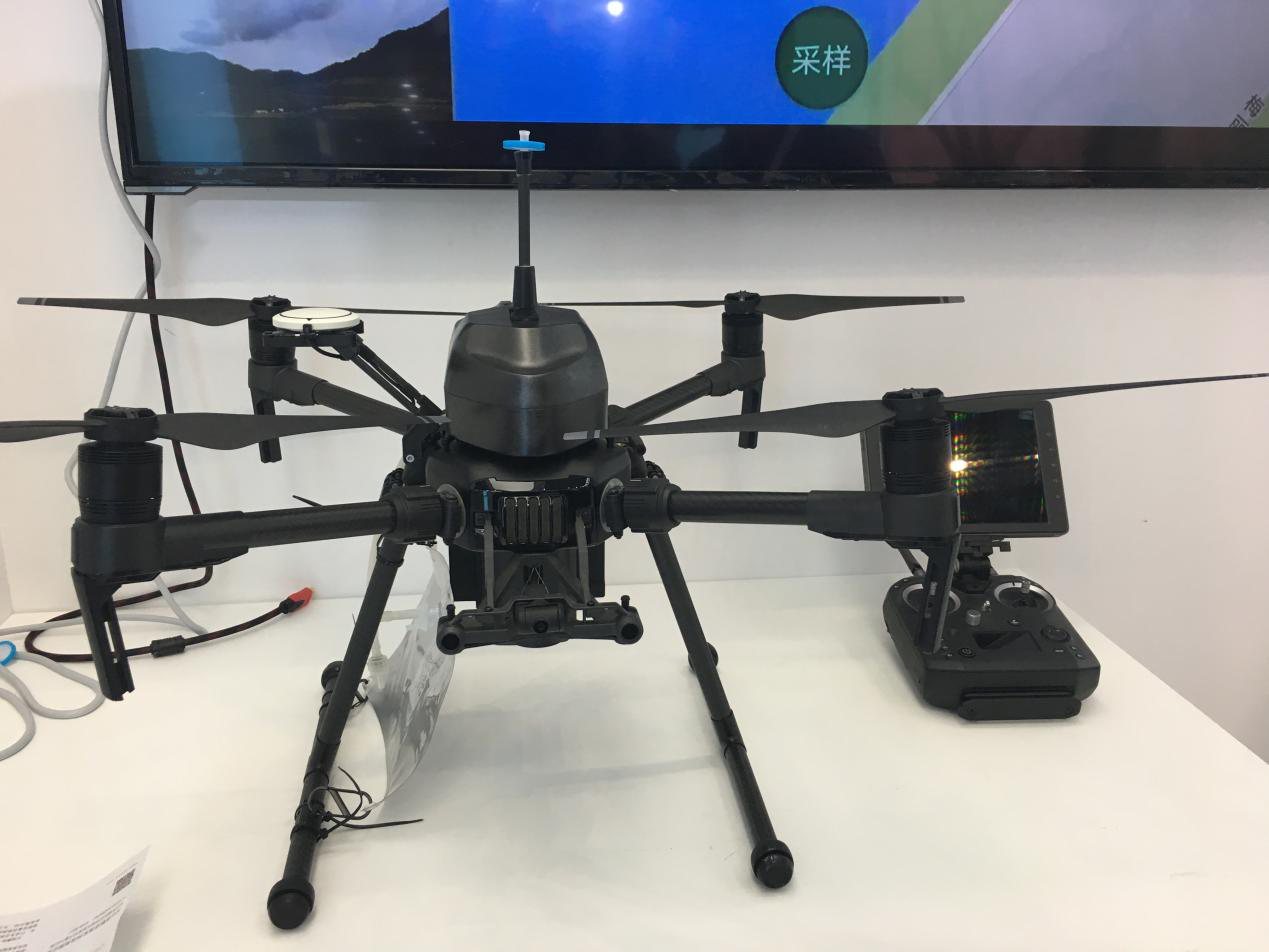 在本次大会上,无人机也出现在一些企业的展位上,而他们的作用则是VR连接、大气监测、水样采集、城市测绘数个项目。