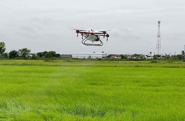 天鹰兄弟植保无人机采用低空低量航空施药,实现了全自主、智能AB点、手动作业模式,具有全地形作业能力,作业效率高,节水节药等优势,可以解决长期以来喷洒农药劳动力不足问题,同时又能降低人力、农药等生产成本,能够促进泰国农业节本增效。