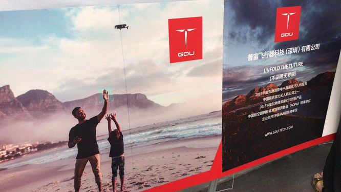 此次亮相的GDU普宙匠心打造军工品质,生产了全球第一台折叠无人机,其折叠设计被提名2016美国CES创新产品大奖。