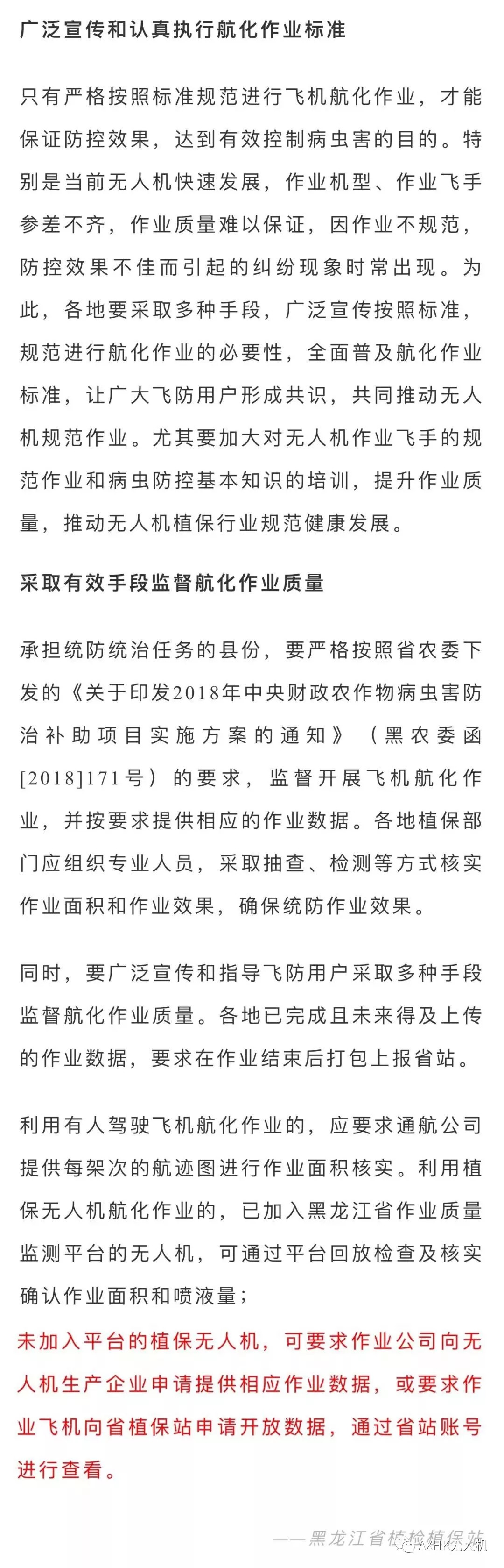 张站长所提出的的标准在黑龙江省植检植保站发布的《关于规范开展飞机航化作业的通知》中也有明确体现,以下为通知正文: