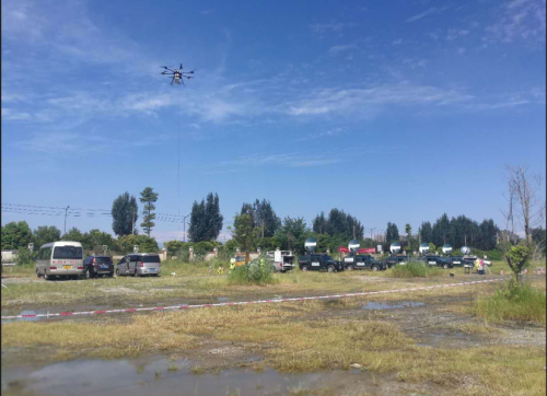 据悉,此次演练中,卓翼智能系留无人机采用了天枢X6-六旋翼系留无人机,负载应急通信高空基站深入灾区腹地。系留无人机做为应急通信平台,可迅速开展现场空中侦察、追踪,将灾区内部的灾情、人员伤亡等信息以数据的形式传输至指挥中心。同时,由于高精度的自动跟随及悬停技术,系留无人机获取的信息更为精准,将为抗灾救援获取更加有效的参考数据。