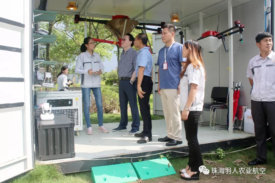 CEO陈博还特别向省政府领导介绍了羽人自主研发的飞耕场站,当得知该飞耕场站作为羽人创新成果,是由特殊制作的集装箱方舱和方舱内外若干个功能模块集成的农业无人机作业及补给装备,由供电系统、储电系统、无人机作业系统、药肥补给系统、运输保障系统和农田智能监测管理系统组成的高度智能化的农机装备,解决了目前植保飞防服务过程中的困难,大规模的应用价值很高。