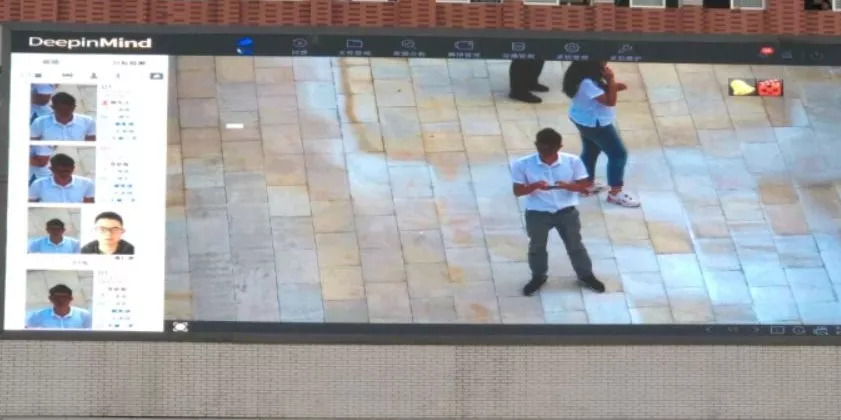 演练现场,由海康威视工作人员临时混入人群中,模拟”犯罪分子”潜藏,海康威视雄鹰系列无人机通过高空观察,成功识别并“锁定”犯罪分子,并获取其身份信息。