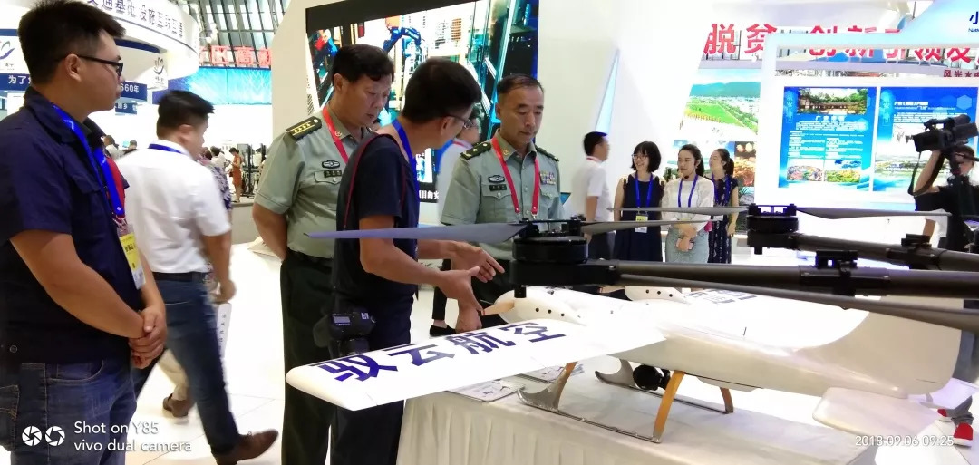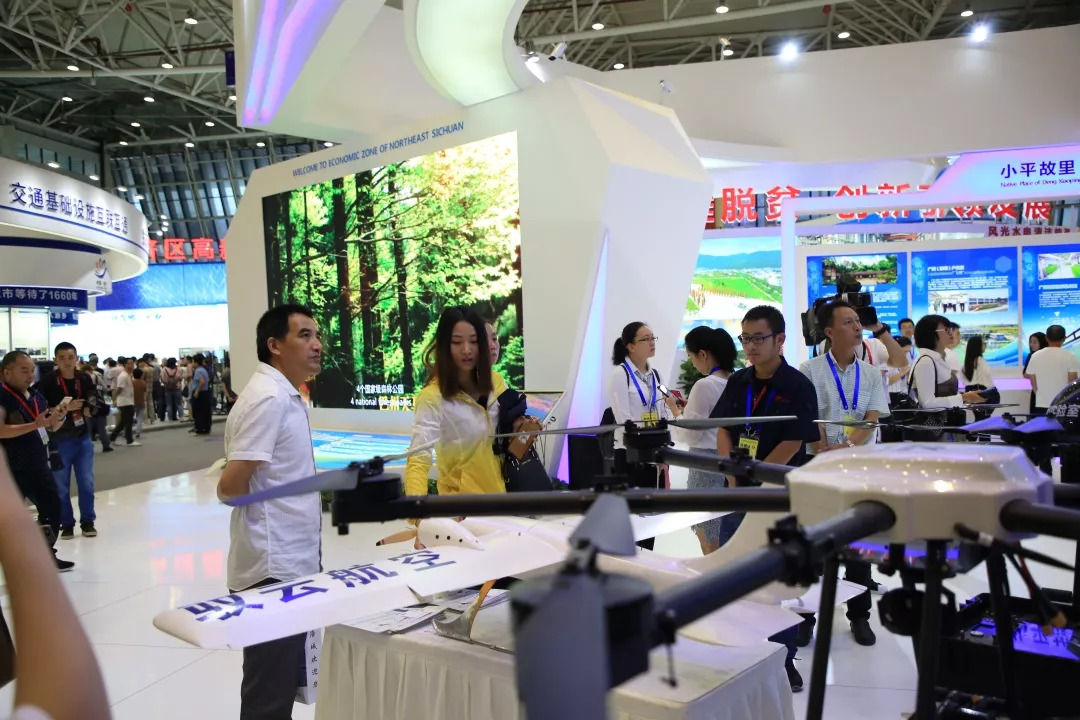 9月6日上午8点半 ,展区正式开放,迎来了第一批参观者。南充驭云展台位置设在D馆——“五大经济区及高新技术产业馆”——南充驭云展馆。此次携带了“警用多旋翼无人机、地面站、警用固定翼无人机”等展品集中亮相。