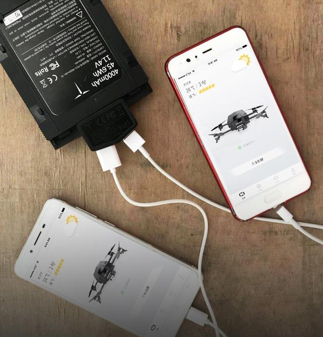 O2的智能电池,不仅能保障飞机的动力和续航,其独有设计的转接头,可以变身为双充充电宝,可同时对2部移动设备进行充电,智能双充,全面满足你的多元之需。