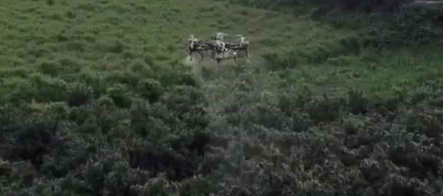 广西果树主要以柑橘为主,其中红蜘蛛是最难打的,植保无人机作业是否有效果,主要看能否把药液打到果树叶背面消灭红蜘蛛,油动多旋翼起飞重量大,下旋风强劲,直接能穿透树冠打到内部及下部树叶背面。