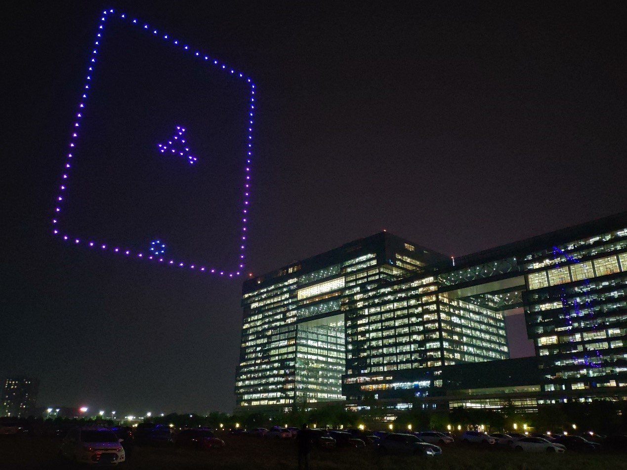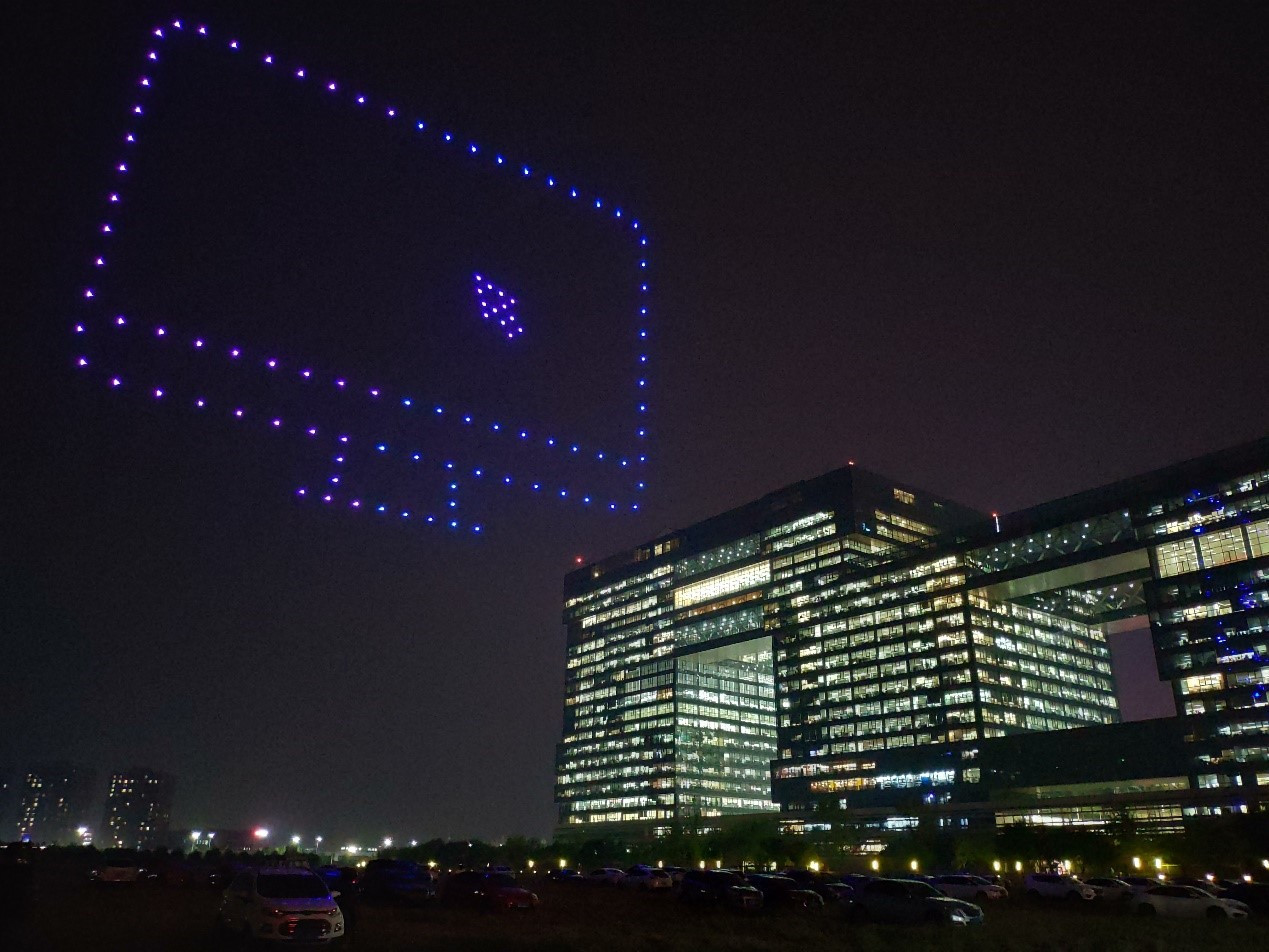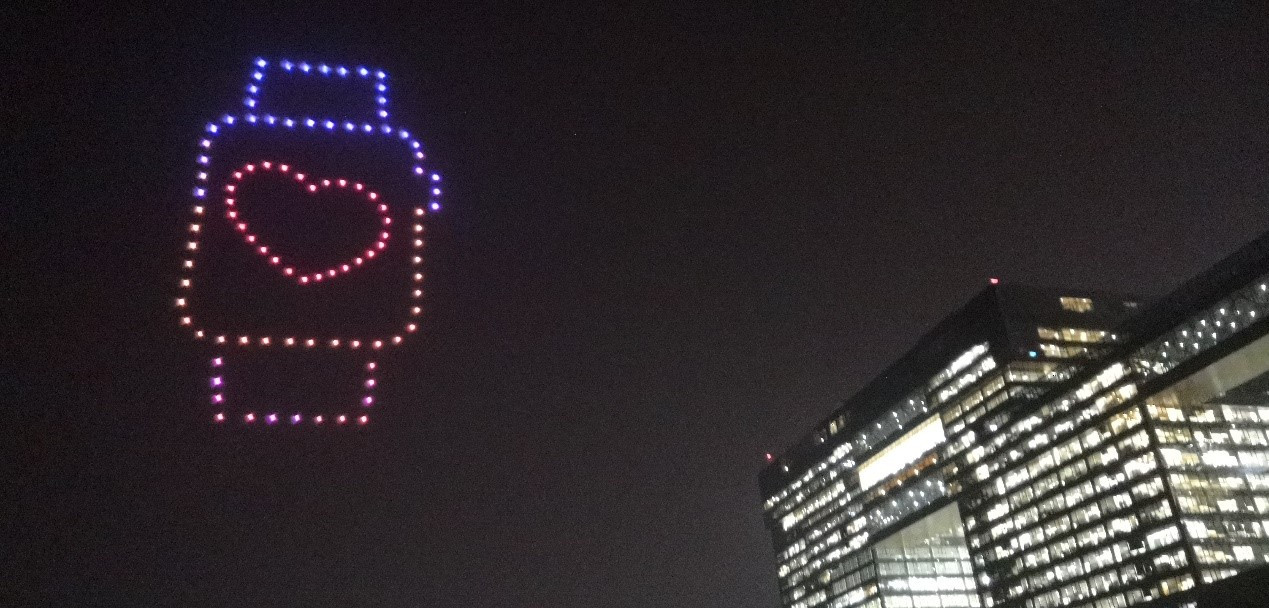 除了展示出京东即将发售的Apple一众新品,此次无人机编队还大秀了一把京东独家的一站式服务——“京享无忧”,颜色变幻闪烁的标语在空中久久停留不休,将京东要为Apple用户提供最全面服务的决心展现得淋漓尽致。